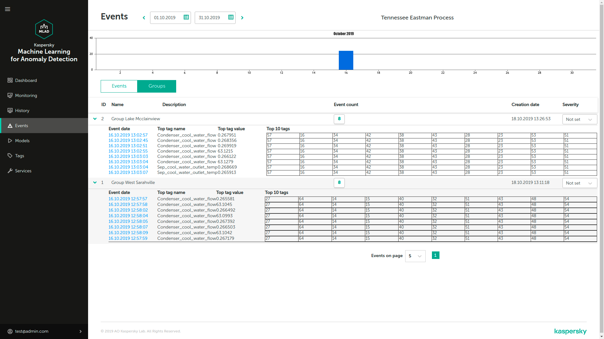 Оповещение может отправляться на электронную почту или в Kaspersky Industrial CyberSecurity for Networks, а также во внешнюю систему АСУ ТП по протоколу MQTT или через согласованный API.Наша система фиксирует в журнале инцидентов каждую обнаруженную аномалию и сопутствующие ей сведения для последующего анализа специалистами по технологическим процессам.
